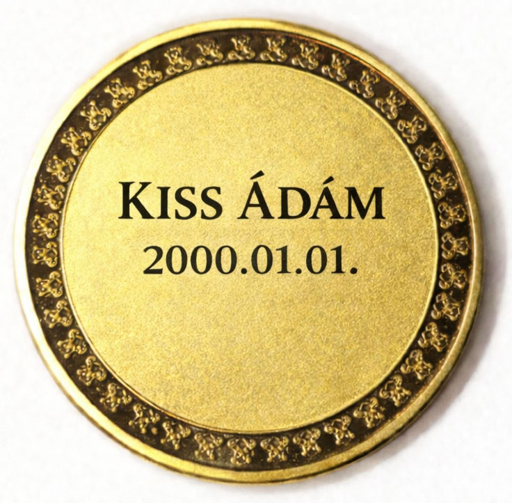 Az egyéb költségek a termék kosárba helyezése után jelennek meg. Az érem szöveg vésésre és színes kép nyomtatására alkalmas.